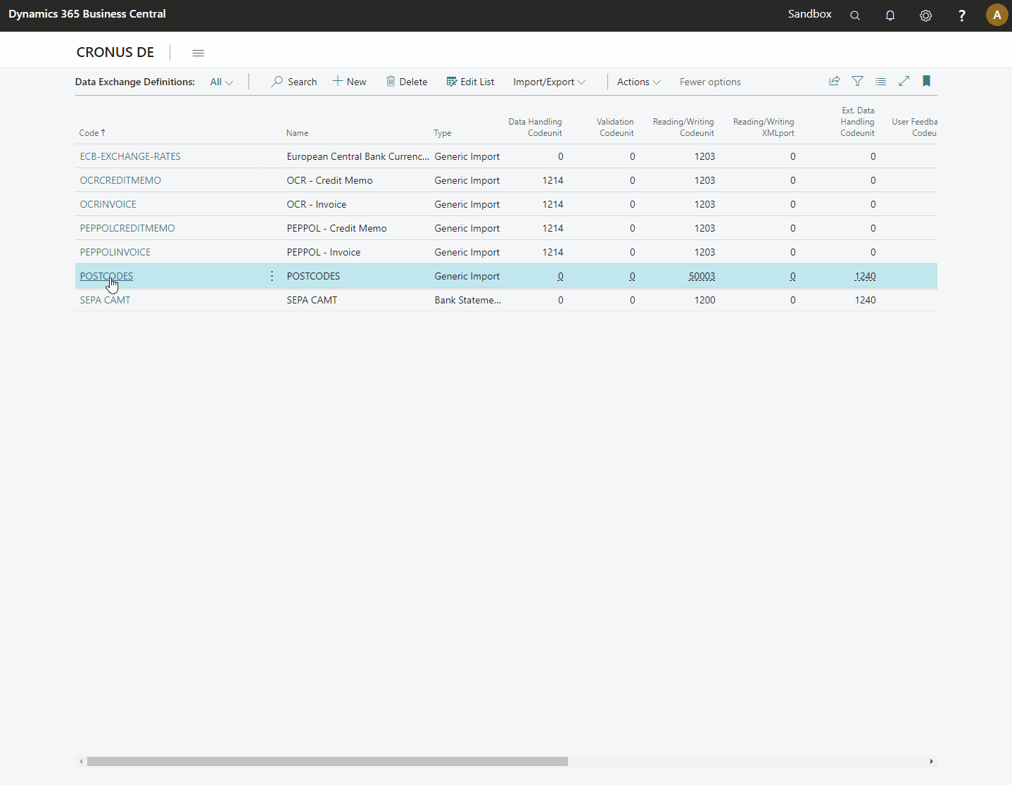 In our case we would like to import German post codes directly into the Post Code table (225) in Business Central.