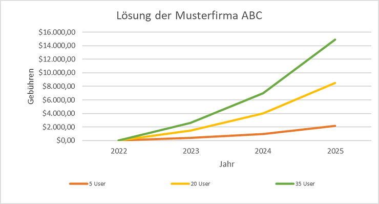 Wenn Musterfirma ABC die Universal Code Initiative ignoriert und nichts unternimmt (Ostrich-Effect), um die Lösung als Extension anzubieten und für die Cloud zu optimieren, fallen die folgenden Gebühren an: